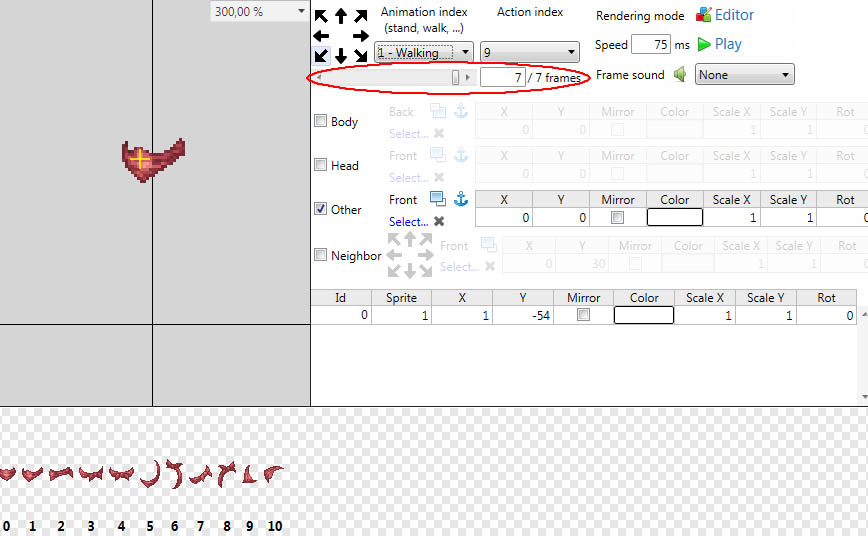 Head still as headgear. Original head sprites are disappears after 9th frame and just blinking while moving 30 frames. Looking for solution.